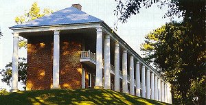 #70 Roseneath (c.1832) the original home of the W.R. McKowen High School. It features a unique balcony suspended between four fluted Doric columns. |