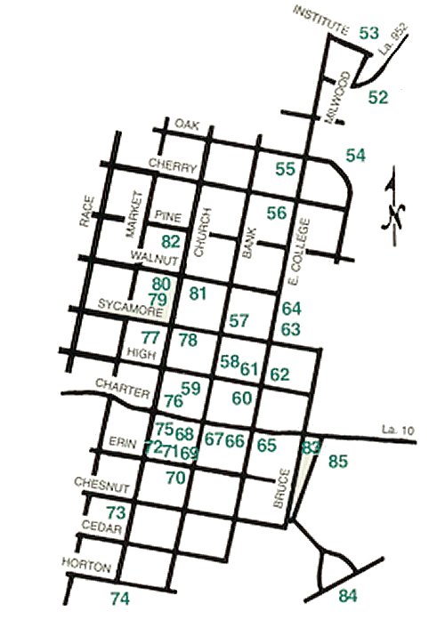#69 Presbyterian Church (c.1852) With it's ornate slave loft still present, this church is located on the corner of Bank and Erin Streets. |